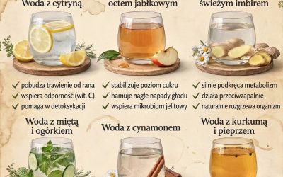 1. Woda z połową wyciśniętej cytryny Pobudza układ trawienny do pracy od samego rana. Wspiera odporność dzięki wysokiej zawartości witaminy C. Skutecznie pomaga…