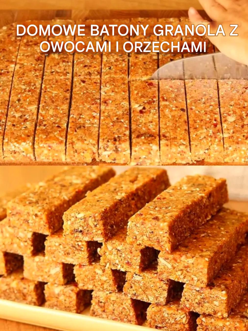 Domowe batony granola z owocami i orzechami to pyszna, pożywna i wygodna przekąska, idealna o każdej porze dnia. Batony te są pełne bogatych w energię płatków owsianych, suszonych owoców, orzechów i nasion, dzięki czemu stanowią doskonałe źródło błonnika, zdrowych tłuszczów i naturalnej słodyczy. Piękno tego przepisu tkwi w jego wszechstronności: łatwo go dostosować do własnych upodobań, dodając ulubione składniki i nie wymaga dodatku cukru rafinowanego. Co więcej, batony te są proste w przygotowaniu i idealne dla każdego, kto szuka smacznej i zdrowej domowej przekąski. Niezależnie od tego, czy zabierzesz je na wędrówkę, potraktujesz jako popołudniową przekąskę, czy po prostu dodasz do porannej kawy, te batony granola z pewnością przypadną Ci do gustu.