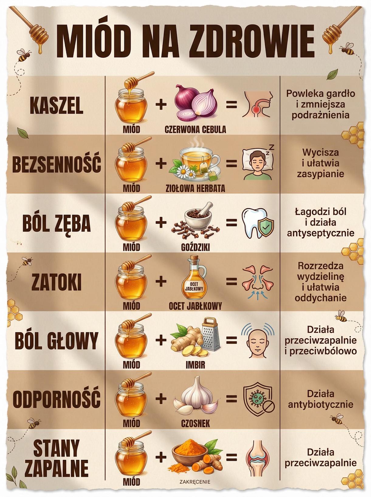 NA KASZEL 🧅 Miód plus cebula. To klasyk nad klasyki. Syrop z cebuli działa wykrztuśnie, a miód powleka podrażnioną błonę śluzową gardła, łagodząc odruch kaszlu. Cebula uwalnia związki siarkowe, które pomagają oczyścić drogi oddechowe. Ouadie RhabbouronMarch 29, 2026 Chcecie więcej takich informacji To umówmy się tak, prośba by każdy: - udostępnił ten post dalej - zostawił komentarz - polubił post i przepisy Jak w zamian deklaruje przygotowanie kolejnej takiej inforgrafiki zdrowotnej Dogadani