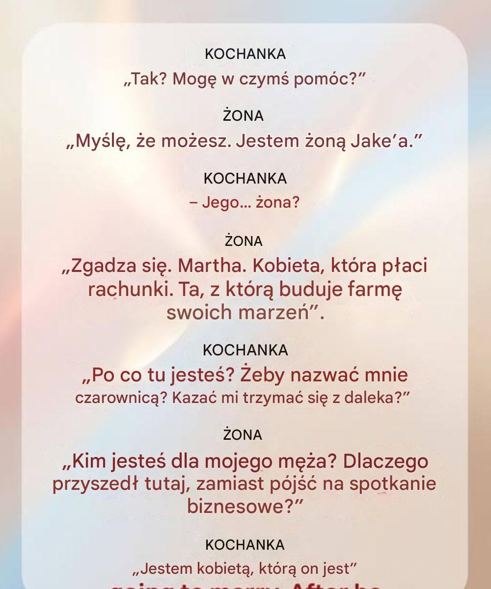 Prawie postanowiła to zignorować; nie spodziewała się nikogo. Ale kiedy otworzyła drzwi, zobaczyła stojącą tam kobietę, z lekko drżącymi rękami, ale stanowczym spojrzeniem, jakby przygotowywała się na tę chwilę raz po raz. To, co powiedziała nieznajoma, zaczęło burzyć spokojne życie, które Martha zdawała sobie sprawę, że znała. W zaledwie kilku zdaniach stało się jasne, że oboje byli połączeni z tym samym mężczyzną – i żadne z nich nigdy nie poznało całej prawdy.