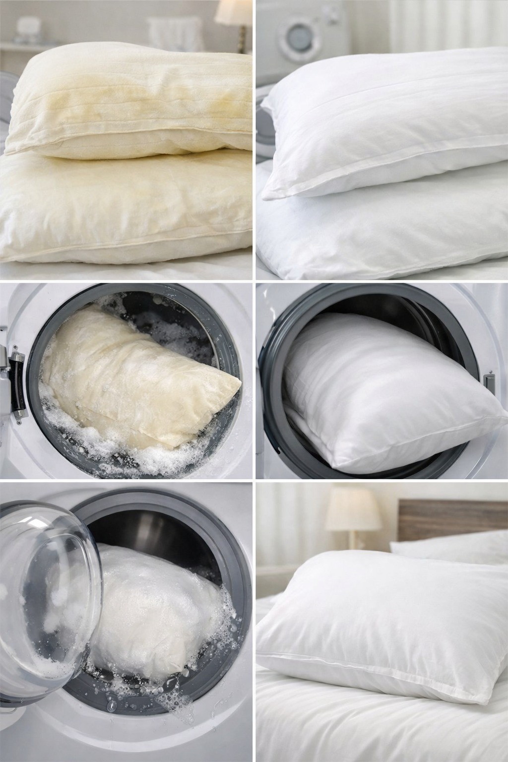 Aby zapobiec żółknięciu poduszek, należy je regularnie czyścić wybielaczami. W rzeczywistości żółknięcie poduszek jest spowodowane głównie wydzielaniem potu podczas snu. Płyny te tworzą klimat sprzyjający rozwojowi bakterii i roztoczy. I nie bez powodu, te patogeny lubią wilgotne środowisko i mogą się rozmnażać w pościeli. Podczas gdy niektórzy pozbywają się swoich poduszek, gdy tylko zauważą żółte plamy, inni uważają, że poszewki wystarczą, aby chronić ich zdrowie i przedłużyć ich żywotność. W rzeczywistości jednak należy je prać co najmniej co 6 miesięcy. Kołdrę można prać raz w roku. Jeśli Twoje poduszki nadają się do prania w pralce, możesz włożyć do bębna dwie piłki tenisowe, aby zachować ich kształt. Jaki jest trik na czyszczenie i wybielanie poduszek?