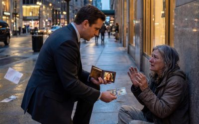 Uklęknął przed bezdomną kobietą, aby dać jej 100 dolarów... ale w chwili, gdy kobieta zobaczyła zdjęcie schowane w jego portfelu, jej świat legł w gruzach — i krzyknęła imię swojej zmarłej córki.