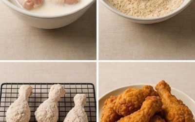 Instrukcje W dużej misce połącz jajka z maślanką. W osobnej misce połącz mąkę, skrobię kukurydzianą, paprykę, czosnek w proszku, cebulę…