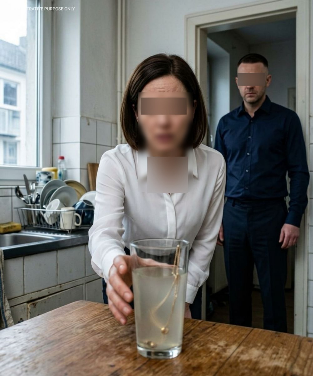 Na dnie szklanki znajdował się szary proszek… i złożony pasek metalu.