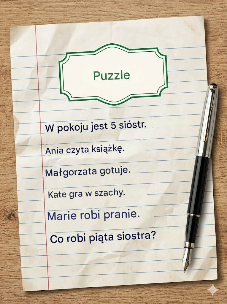 Oto zabawna odmiana klasycznej łamigłówki. Na pierwszy rzut oka wydaje się prosta, ale jak w przypadku wielu klasycznych zagadek, odpowiedź kryje się w sformułowaniu. A więc do dzieła!