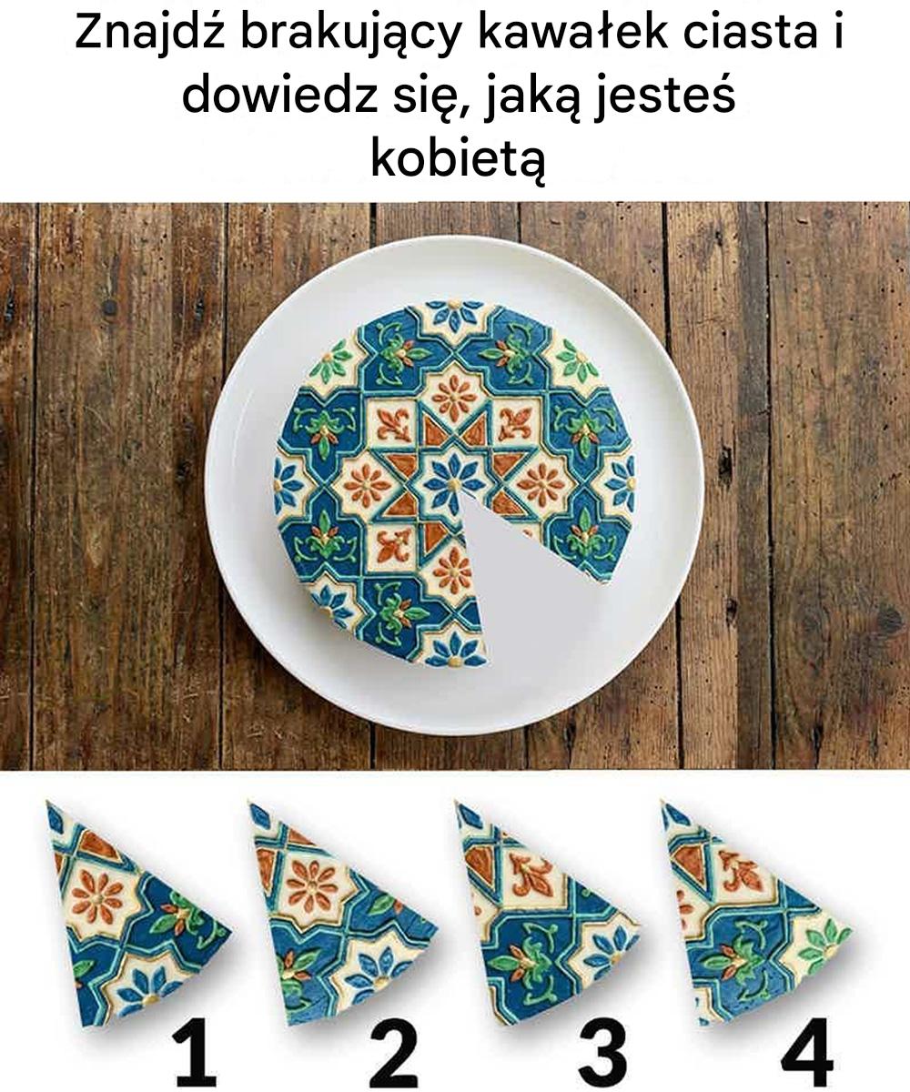 Zagadki osobowości oparte na wyborach wizualnych stały się bardzo popularne, ponieważ łączą obserwację, intuicję i odrobinę autorefleksji. Powyższe zdjęcie przedstawia pięknie wzorzyste ciasto, z jednym brakującym kawałkiem. Pod nią znajdują się cztery możliwe elementy, które mogą pasować do pustej przestrzeni.